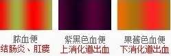 膿血便:直、結腸癌,潰瘍性腸炎。