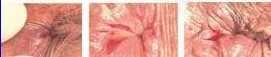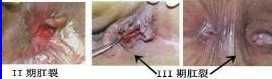 Ⅰ期藥物流產:肛管皮膚淺表縱裂,創緣整齊、鮮嫩。觸痛明顯,創面富于彈性。